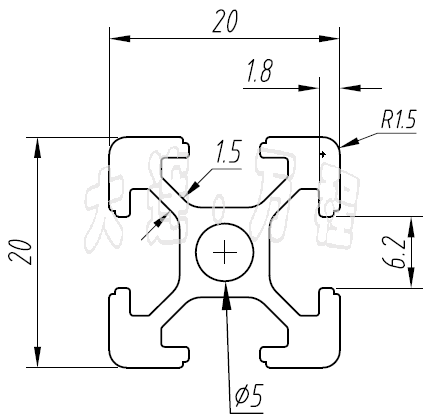 歐標(biāo)2020鋁型材 壁厚1.8 米重0.51
